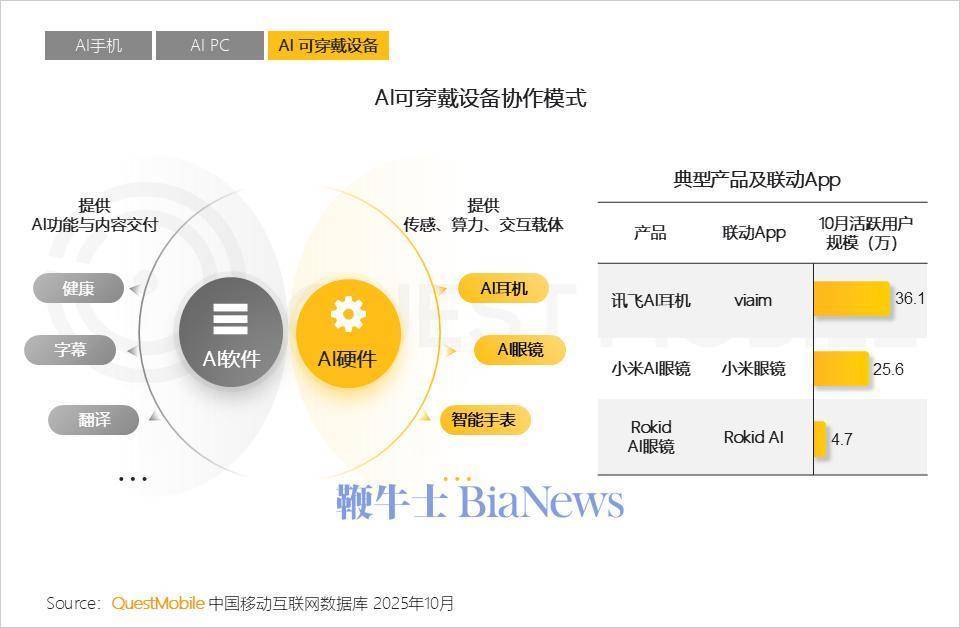 结尾到2025年10月,智能衣裳类App月活跃用户范围达1.59亿,同比增长12.8%。其中,小米眼镜APP 10月份月活用户达到25.6万,讯飞AI耳机联动APP “viaim” 10月份活跃用户范围达到36.1万。