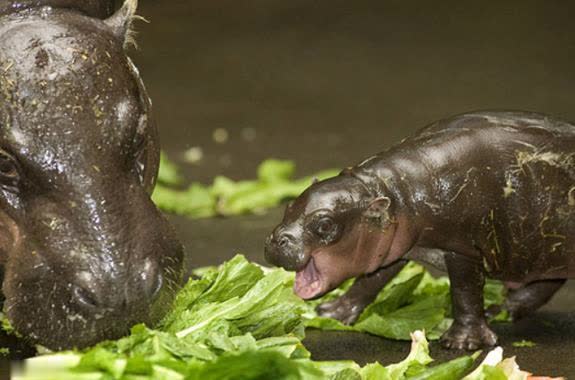 河马宝宝,身上还有点脏兮兮的,有着蹭亮的皮肤,小小的一只看着照旧很可人的!