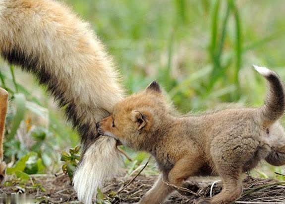 小狐狸宝宝,一口咬住姆妈的尾巴,这是多狭小走丢啊!几乎太可人了。