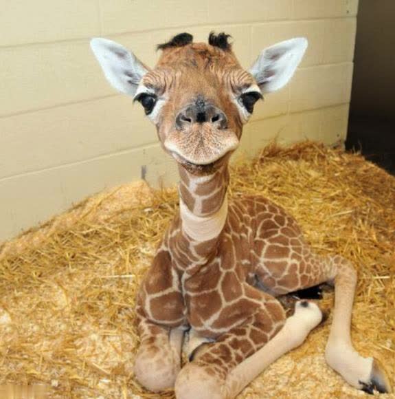 长颈鹿的宝宝,小小年龄脖子一经那么长了,但情势还未褪去稚气,显得相称呆萌可人!