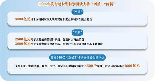 本年政府责任证实明确,2026年,中国将刊行超始终卓著国债1.3万亿元,支抓“两重”(国度紧要计谋施行和重心领域安全才气接济)、“两新”(大领域征战更新和破钞品以旧换新)。这是自2024年以来,中国归拢第三年刊行超始终卓著国债。