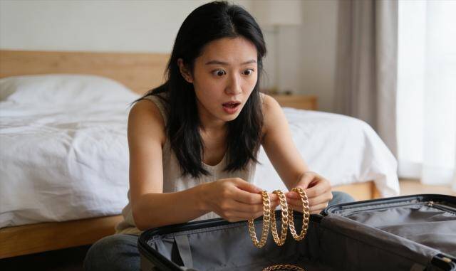 不,此次不是手链。我掏出来一看,是一双金耳饰和一枚金礼貌。耳饰是那种旧式的梅花款,礼貌上刻着一个“福”字。这些东西我见过——它们和手链放在归拢个首饰盒里,是林舒怡的日常首饰,她偶尔会戴。