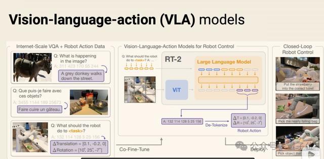 第一代是RT-2,把机器东谈主作为闹翻化成token,塞进VLM的next-token prediction里。