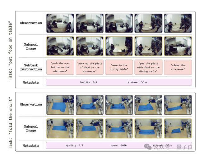任务提示(计帐厨房)+子任务提示(翻开雪柜)+子方针图像(下一秒画面应该长什么样)+episode元数据(这条数据质地几分、有莫得出错、速率多快)。
