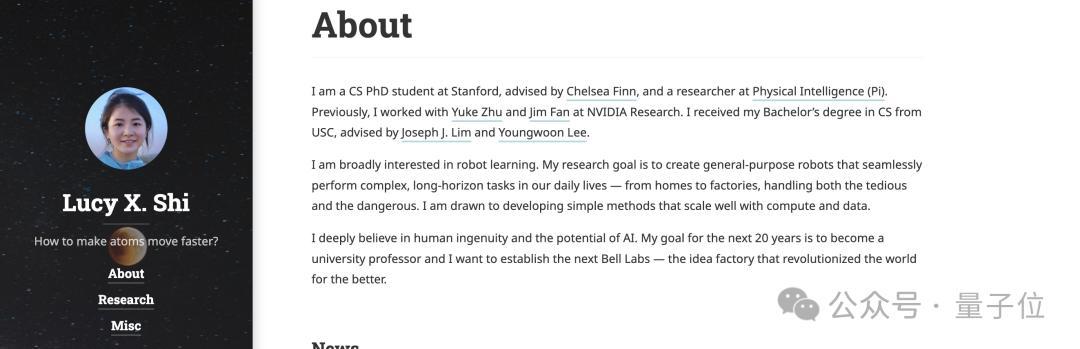 Lucy Shi,斯坦福博士生在读,师从Chelsea Finn,π0.7的中枢作家之一。