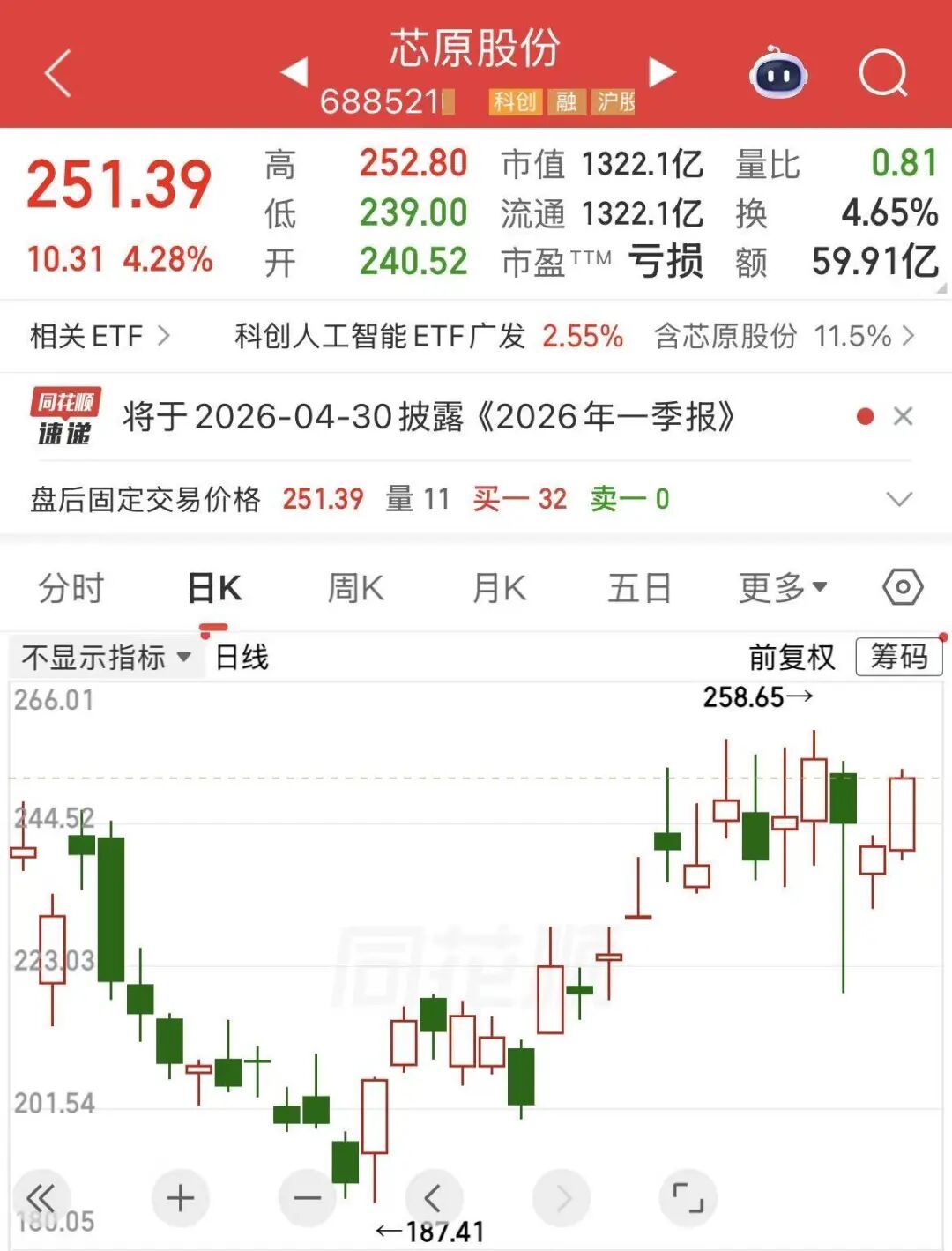 当日,公司辟谣之后,芯原股份股价颠簸拉升,收盘股价跌超3%。4月17日至4月20日(时辰仅两个往复日),芯原股份累计涨幅为2.73%。4月20日收盘,公司最新市值为1322亿元。