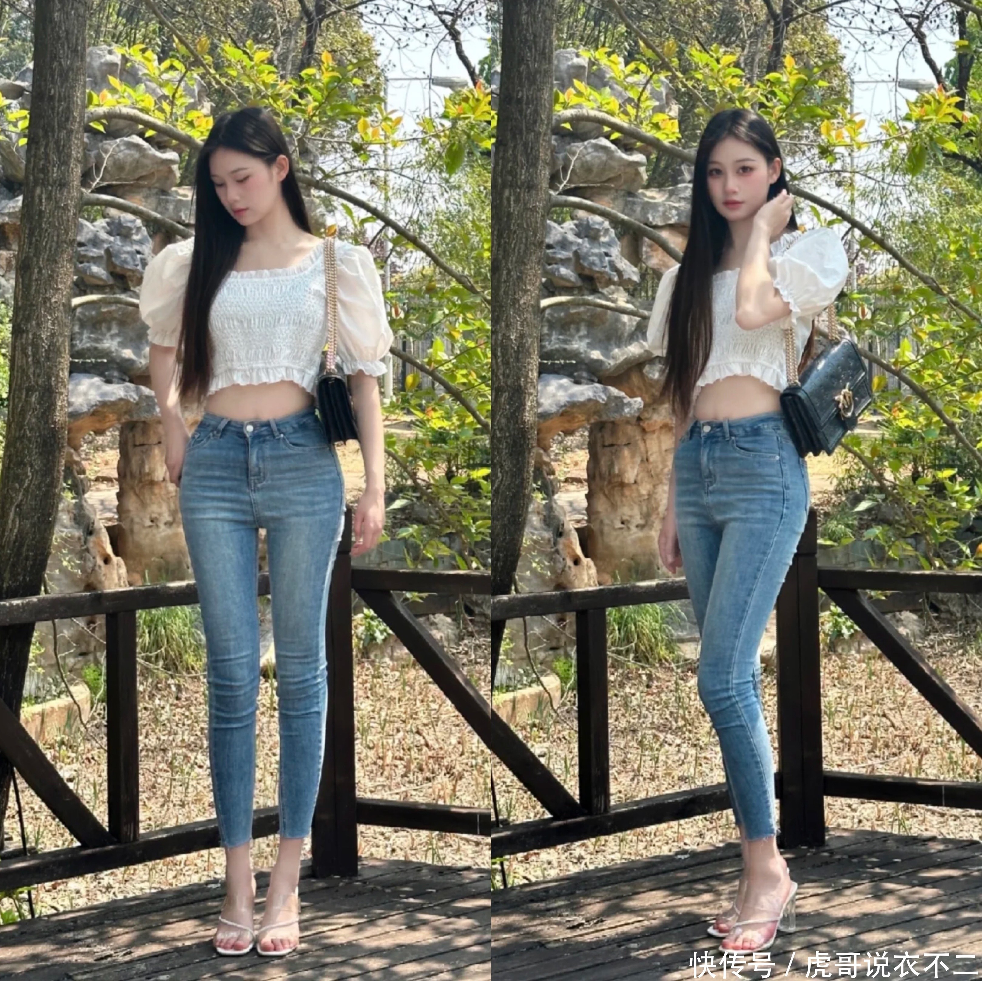 露脐上衣+牛仔铅笔裤:露脐装是夏令专属,泄漏纤细的小蛮腰同期还能打造高腰线,相助九分裤长+高跟鞋,小个子也能松驰摆布。